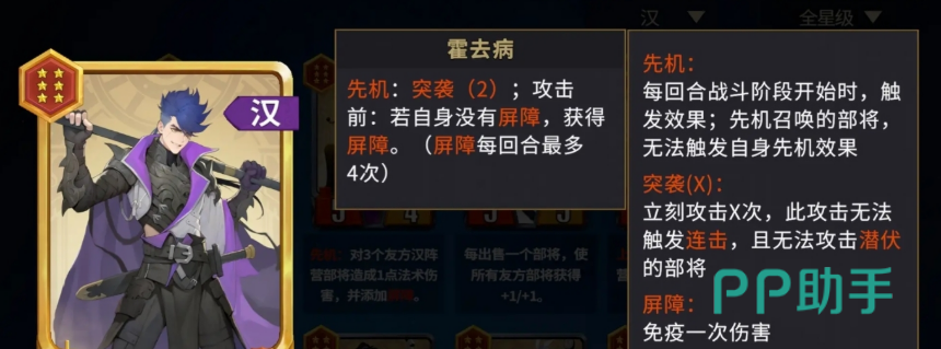第四套为「汉朝屏障反制流」:霍去病与李广均具备自身施加护盾的能力,卫夫子则在友方单位护盾破碎后,为其附加攻击力加成。该体系通过护盾存在与破裂的动态转换,激活卫夫子的增益机制。吕后可主动破坏己方护盾,加快触发节奏;东方朔补充功能性控制与辅助,最终成型配置通常为双霍去病、双卫夫子、李广、吕后及东方朔,兼顾坦度、爆发与战术灵活性。