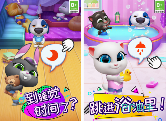 这款是以汤姆猫家族的成员,展开互动为主的小游戏,除了里面有可爱的小猫咪,还有小狗狗,他们都有独一无二的形象。当你置身于游戏中以后,无论喜欢哪个,都能做很多欢乐的事情,并没有难度大的玩法,基本上孩子,都能在这款游戏中找到自己感兴趣的。支持与角色制作美食,或者是在游泳池里面跳舞,享受玩水的时光。