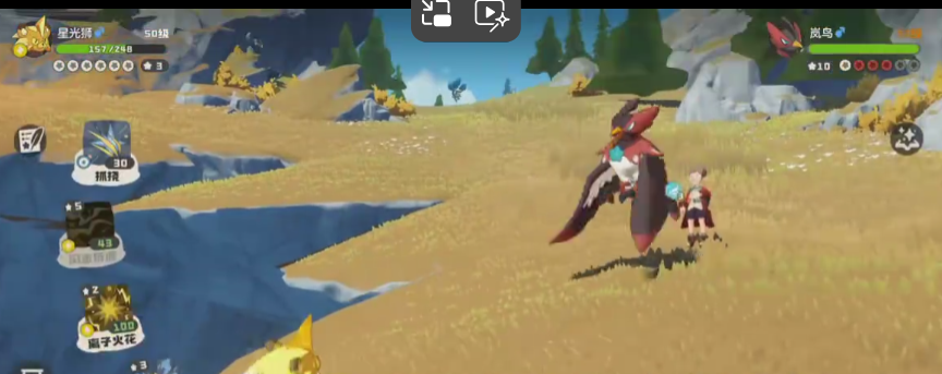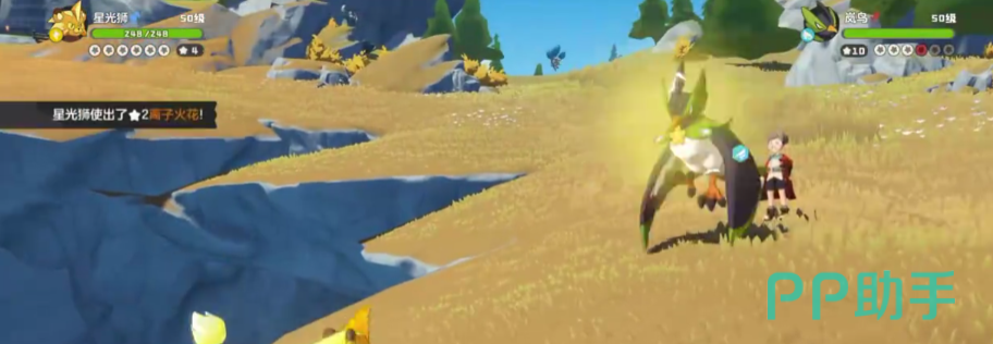 第二只精灵依旧是翼系得岚鸟,不过这只岚鸟得颜色变成了绿色,我们依旧使用电系得星光狮子就能应对。