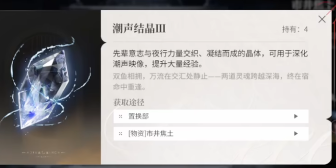 需特别说明的是,潮声结晶仅可通过完成指定难度层级的市井焦土副本获得,无法通过其他日常活动或商城兑换获取。因此,持续优化角色练度、打磨阵容适配性、精进实操微操水平,是稳定获取该资源的唯一可行路径。建议玩家将阶段性资源投入聚焦于核心三角色培养,形成可持续强化循环,从而在后续更高难度内容中建立稳固战力基础。