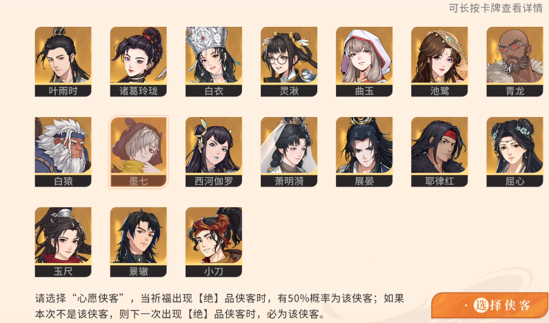 除了诸葛玲珑之外,白衣同样是应对高难度boss战的优选角色。该角色同样具备高额生命值与可观的暴击伤害,定位为稀有心愿侠客,需通过特定抽取途径获得。尽管前期难以入手,但一旦解锁便能在战斗中发挥重要作用。与诸葛玲珑不同的是,白衣在属性上有所差异,因此在面对存在属性克制关系的对手时,应根据战场环境灵活调整人选。此外,墨七也是值得信赖的参战单位,其登场后可召唤出协助作战的分身,不仅能分摊伤害或吸引火力,还能降低全队技能的怒气消耗,显著提升整体作战效率。