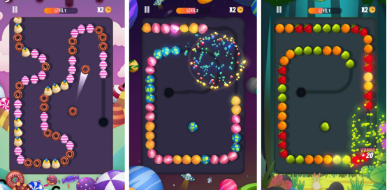 以消除类型的玩法为核心,这款游戏其实和特别经典的祖玛游戏特别相似。开局后也会从一个入口逐渐涌现出不同的水果,玩家可通过精准瞄准的方式,将相同的水果放在一起快速消除。涵盖了40多个不同的皮肤,可任由玩家随意搭配,在这款游戏里面能够感受到消除的爽快感,也很考验老年人的手速以及反应能力。