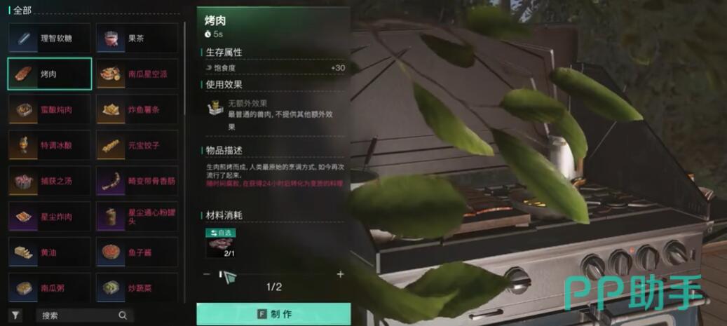 常规动物如鹿、野猪分布更广但收益较低。森林边缘设置绳网陷阱,配合诱饵(浆果或草料)可提升捕获率,每陷阱日均产出3-5块生肉。夜间狩猎需配备火把或荧光剂。部分废弃据点内冰箱藏有腐肉,经烹饪台加工后可转化为安全食物,但需消耗2倍柴火资源。