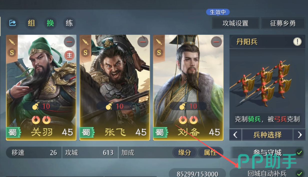 进入实战阶段后,建议开启界面右下角的“自动征兵”功能。系统将依据当前兵种配置与资源余量,智能补充阵亡兵力。需特别注意:粮草与元宝为征兵硬性消耗资源,务必提前规划储备,防止因资源短缺导致战力断档。
