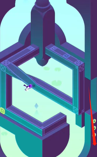 第二场景的核心目标是重构可通行道路。通过多次旋转调整,使三段独立路径首尾严丝合缝地衔接。每次旋转后需验证角色能否沿当前路线无障碍行进。当道路形态稳定后,再次启动旋转机关,将整体结构转为倾斜向下姿态——此时下方将显现出一条贯通路径,主角可沿此路线抵达上方目标房门,从而进入最终场景。