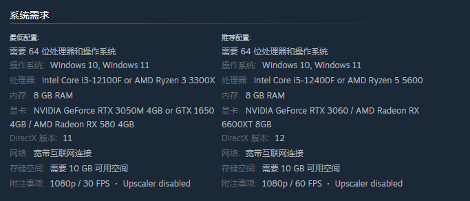 有可能是配置没有满足需求,最低的配置要求选择windows操作系统,处理器选择AMD Ryzen 3 3300X,显卡是选择GTX 1650 4GB,在满足这些配置要求时,体验游戏才会比较顺畅。
