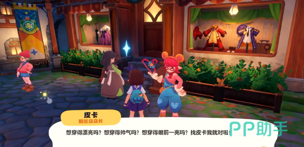 玩家首先就需要进入到商店街中心,需要找到皮卡服装店的店长,在找到店长之后可以点击皮卡,然后完成对话。