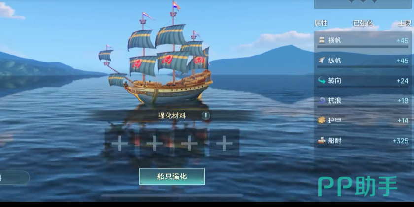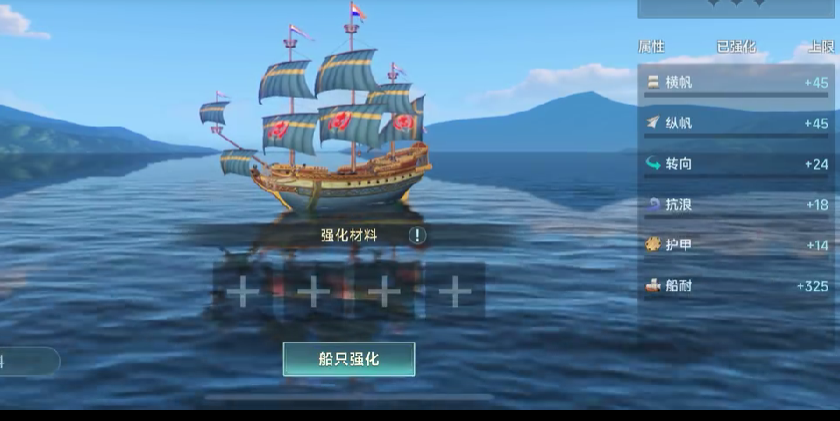 横帆和纵帆虽然也决定着战船的移动速度,可小编认为这两个强化点的影响并没有抗浪大,在这三个强化点中,优先建议强化抗浪,抗浪越高,战船在战斗地图中的移动速度就越快。