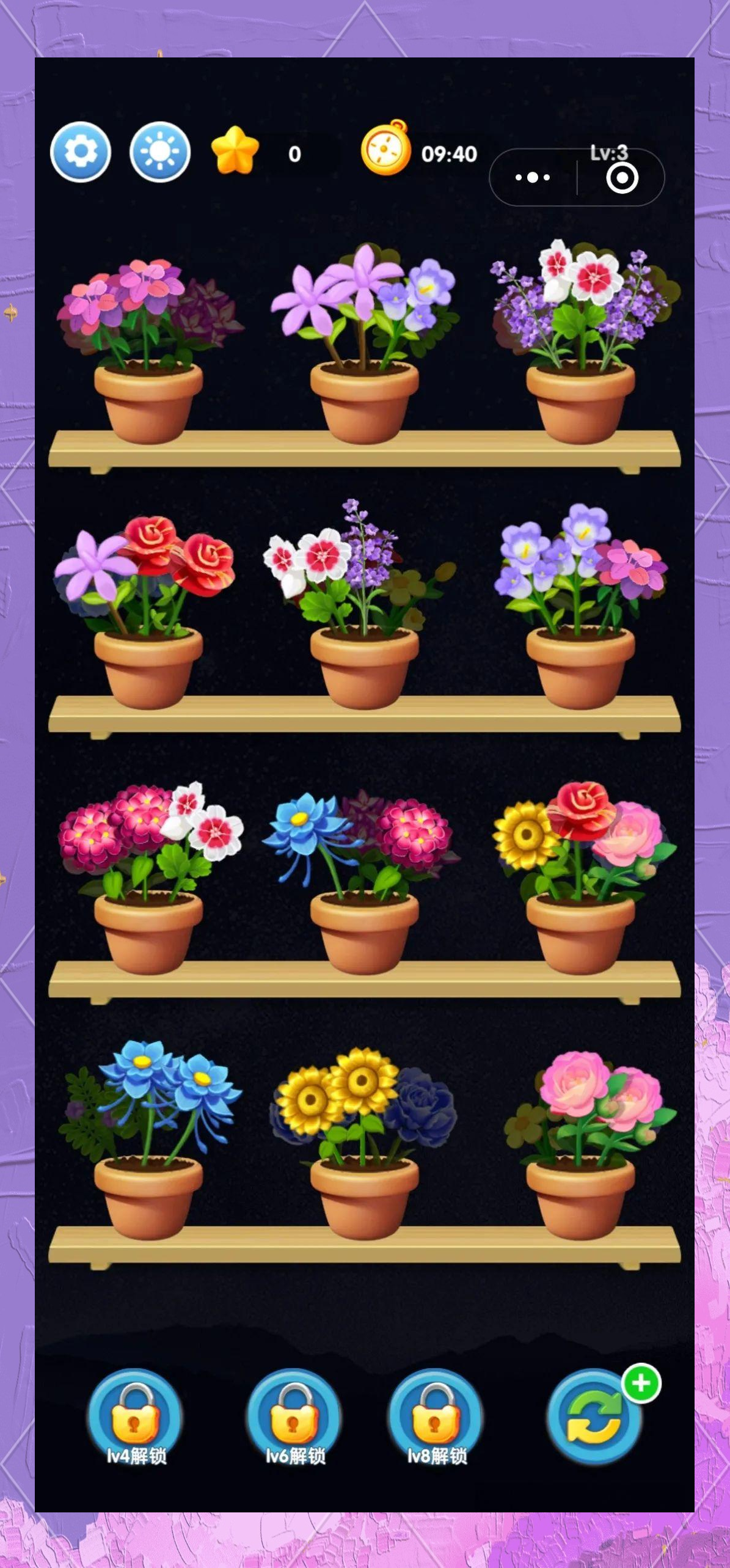创意十足的花朵造型设计每一个关卡都显得非常具有挑战性,当我们置身于五彩斑斓的花海之中时,玩家可以通过相同的花朵拖拽将他们放入到对应的花盆之中。解锁的关卡越多出现的稀罕花朵,种类就会越多,给我们的关卡挑战带来无尽的惊喜完成每日任务或者是周任务都会获得金币,拥有更多新的道具使用。