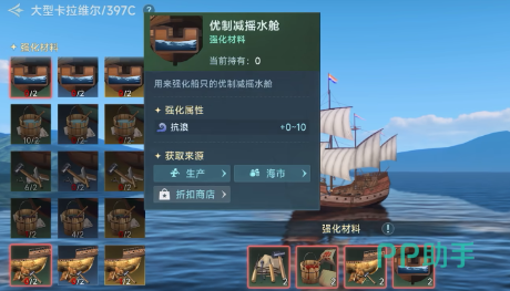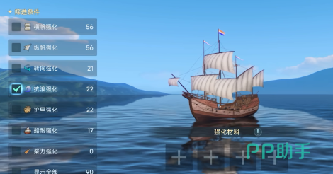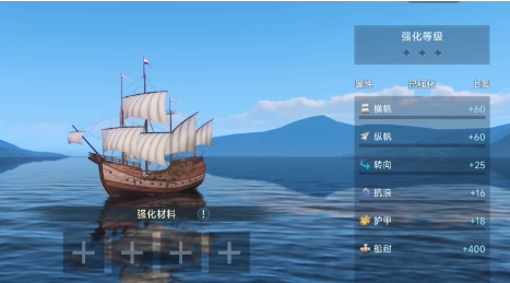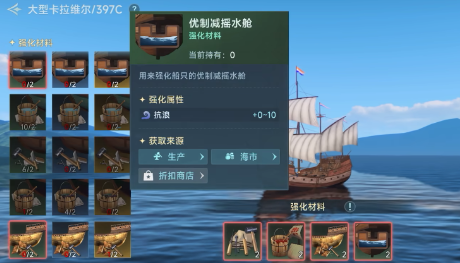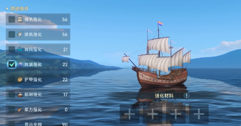 有一些船只很可能根本就没有办法抵抗大风大浪,因此在海上航行就会受到影响,此时要想强化就需要强化整体。可以进入到强化的页面,这里其实就能看到玩家目前所拥有的船只,然后去挑选一个自己所想要提升的货船。不过在提升时还需要了解,如果强化货船,主要是提升抗浪方面的优势。如果想要更加稳定一些,就需要优质的减摇水舱。