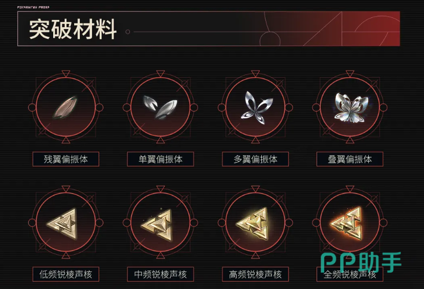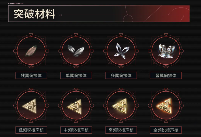 获取途径为限定武器卡池抽取,突破材料需通过对应活动或副本获取,具体所需素材详见下方图示。玩家需按阶段规划资源投入,以实现武器战力最大化。