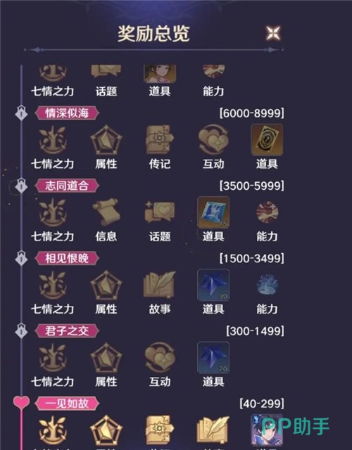 玩家们需要不断的提高他们的好感度来解锁相关的奖励体验,更有趣的互动玩法,只有在最后达到缘定三生的等级之后,才可以解锁特殊的武魂能力精通,在右侧的资料中,还有民事的相关信息以及资料等等,包含了许多的话题,后面也可以随着好感度的提升来不断的进行解锁,个人的支线剧情也会在里面,玩家们可以通过这个途径来了解他们的相关信息。