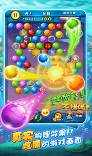 在这些彩色泡泡中间还会隐藏着大量的物品,每一关都会有特定的物品收集需求,玩家只有消除掉物品下方的泡泡,这些物品才能掉落下来,需要在游戏里不断制定策略,并且根据下方炮塔中炮炮的颜色,发射到相应的位置,这样才能完成消除要求,假如最下方的泡泡颜色和泡塔中的颜色并不相同,那玩家发射上去之后,这些泡泡就会附着在上方,随着每一次消除,都需要合理的制定策略,这样来才能让场景中的泡泡随着消除变得越来越少,否则一旦发生的位置不对,就会导致上方悬浮的泡泡越来越多。