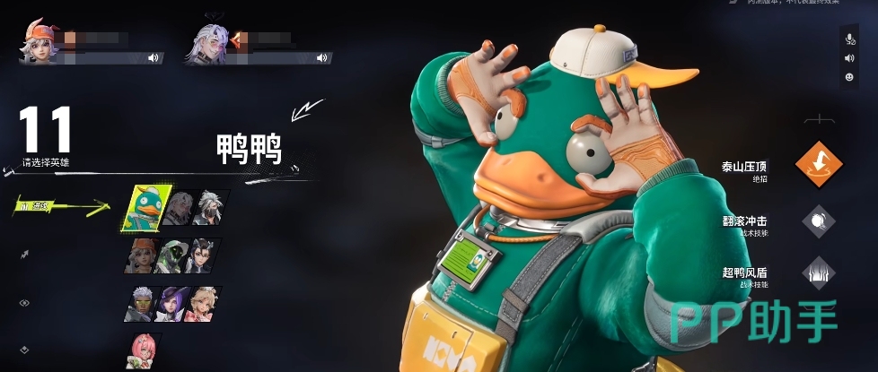 首先来看鸭鸭,这位兼具生存与输出能力的角色在前线作战中表现出色。其翻滚冲击技能可让鸭鸭瞬间充气成球,在地面高速滚动前行,并获得一层可吸收伤害的护盾。护盾存在期间提供减伤效果,但累积受击后会破裂并强制结束技能。在滚动过程中触碰到敌人时,不仅能造成基础伤害,还能将其击飞,打乱敌方阵型。此外,全速冲锋技能使其向前突进并在路径上留下加速装置,队友经过时可获得移速加成,提升团队机动性。大招为高空坠击,落地瞬间释放冲击波,对内圈目标造成击飞,外圈敌人则受到减速影响,实现范围控制与高额输出双重效果。