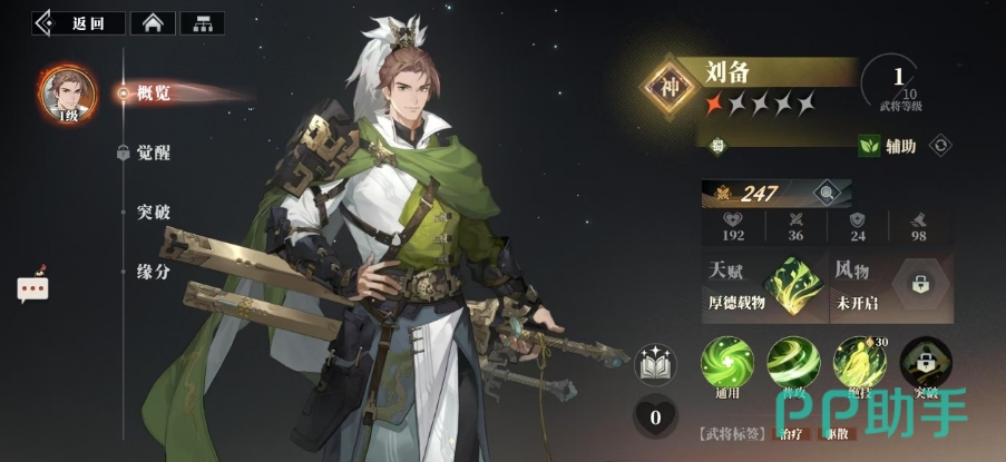 刘备这位以仁德著称的蜀汉君主,虽然是辅助之名,但是他的群体治疗技能还是很好用的,以自身94%的攻击力为消耗,为所有友军带来希望,每当敌方回合落幕,就能触发刘备的治愈之力,带来释放者攻击力30%的生命治疗,最多可叠加五层,而五星之后,民心效果带来的治疗数值更高,此时获得了40%的治愈加成。