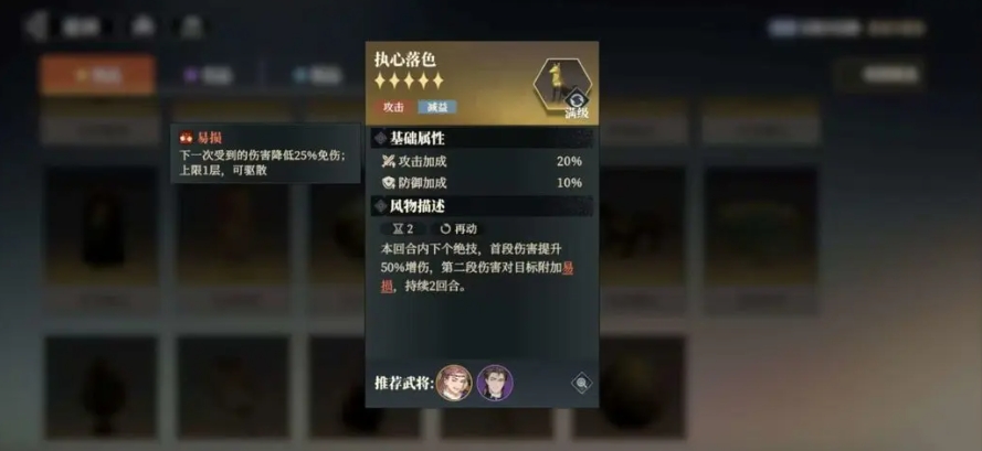 赵云可以转职为突击手,增加前几回合的时序,让他能够更快速地补刀,而蹇硕建议为转职领袖,这样就可以为全队提供15%的增减伤,在风物的选择上,同样需要精心搭配,关羽推荐携带关山听雷,使得大招造成伤害后,还能再造成一次40%的衍生伤害,相当于对最终输出结果翻了1.4倍,而张郃建议携带执心落色,这样就可以获得天赋和职业之外的第三重破防效果,让敌人在面对关羽时更加脆弱。