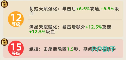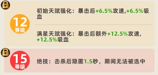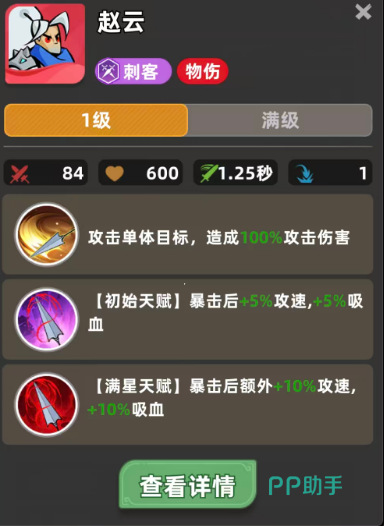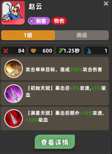 随着星级提升,天赋加成同步增强。满星时,暴击触发的增益提升至10%攻速与10%吸血,大幅拉高输出循环效率。值得注意的是,该天赋不设层数上限,只要持续暴击即可不断滚雪球,形成越战越强的正向反馈。配合攻速装与暴击率装备,赵云在中后期可实现高频多段暴击,真实伤害转化率随之攀升。