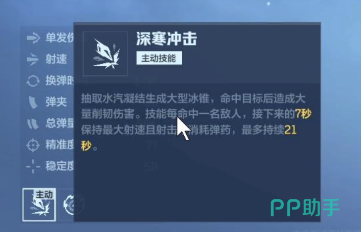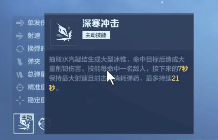 第一项技能名为“深寒冲击”,启用后可从环境中汲取水汽并凝结为冰锥,随普通子弹同步发射。当冰锥命中目标时,后续一次射击将不消耗弹药,形成实质性的弹药续接效果,大幅提升持续压制能力。