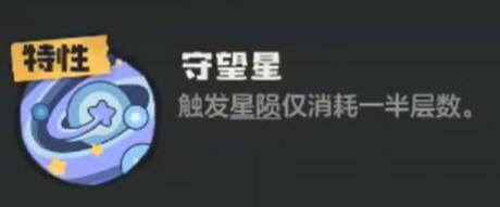 其次,就是因为暮星辰的精灵特性。这个角色的特性名叫守望星,其效果就是触发星陨消耗的层数减少一半。所谓的星陨,就是一个造成幻系额外伤害的负面印记,伴随层数的增加,这个额外的伤害会越来越高。也就是说,因为本特性的存在,暮星辰天生就非常适配星陨队。而在队伍当中,这个精灵是作为输出存在的。