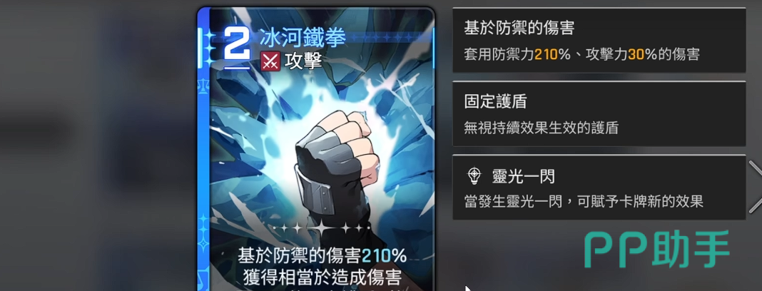 至于冰河拳击,则是麦格纳的主要输出手段之一,其伤害结算与当前持有的护盾量直接挂钩。这意味着护盾越厚,单次打击的威力就越强。当队伍整体输出不足时,可以适当多配置此卡;反之若已有主力输出角色,可减少该卡数量,转而强化生存与反击频率相关的卡牌。