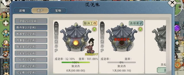 丹药则是弟子突破境界的关键辅助。每一次大境界的突破都需要对应的丹药,否则失败的代价可能是弟子的死亡。即使如此,玩家也无需过于担忧,混沌珠中的养魂瓶可复活死亡弟子,而养魂水则可用于驱逐弟子以获取点数,用于升仙台声望商铺中兑换更多资源。在家族整体规划中,丹药的合理分配与弟子突破的优先级需根据当前家族资源与发展策略进行调整。在重修过程中可大胆实验,不必担心弟子培养的连带影响。