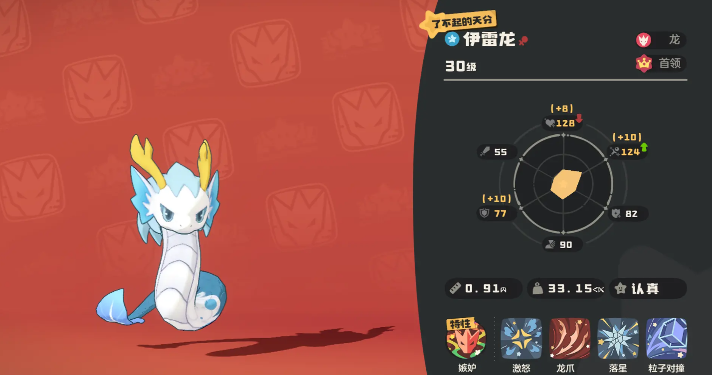 伊雷龙在游戏当中,具备有魔法攻击属性以及物理攻击属性,但是整体的输出能力偏向于物理输出,在逐渐成长之后,魔法攻击属性才会增加,满级后速度数值为160点,抢先出手的概率非常高,在游戏内,可以抢占回合先机,虽然伊雷龙防御数值比较低,但是可以搭配,拥有护盾技能的辅助角色,来弥补血量不足的短板。