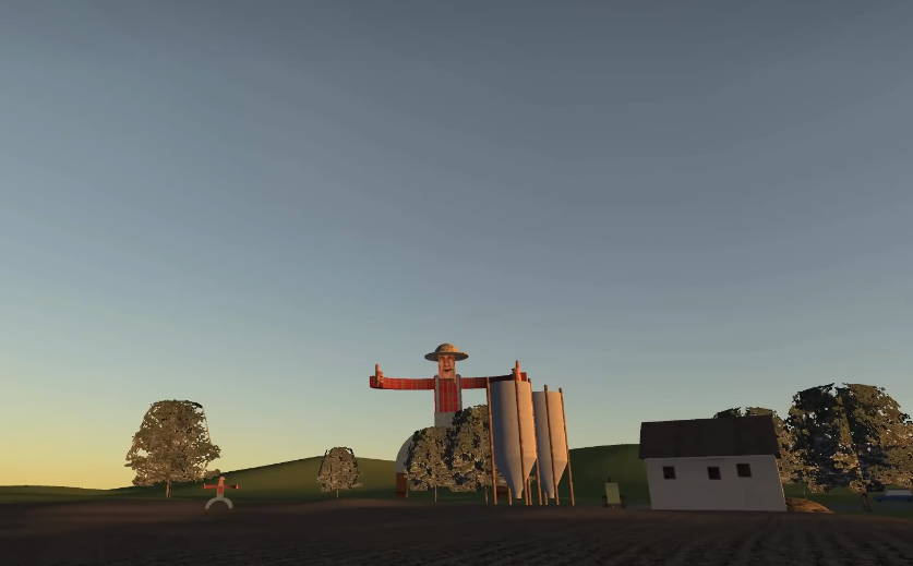 在游戏地图中,山顶区域是一个关键的探索点。玩家可以切换为自由视角模式,环绕观察整个高地环境。在此视角下,能够发现农夫约翰正在滑梯上活动,这一细节往往容易被忽略。此外,在田地中央立着一个形似稻草人的角色,当靠近该目标时,它会突然发动攻击,试图捕捉玩家,必须迅速反应并进行闪避,否则可能导致任务失败。而在同一片区域还停有一台挖掘机,一旦接近,便会自动播放一段节奏魔性的音乐,并将玩家传送至一个神秘空间,开启一段非常规的游戏流程。