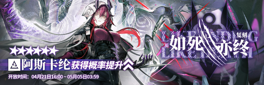 与此同时,限时干员寻访【如死亦终】将于4月21日至5月5日期间开启。在此期间,阿斯卡纶、阿罗玛、烈夏等干员的抽取概率将提升。特别是阿斯卡纶的六星出率占比达到50%,这是玩家获取此干员的一个好机会。如果你未曾获得这些强力干员,或者想再次招募,记得抓住这个机会。需要注意的是,这次寻访为标准寻访,150抽保底的机制依然存在,玩家可以利用这一机制确保最终获得目标干员。