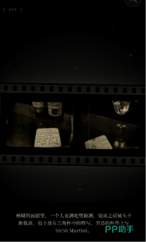 游戏中设有鸡尾酒学习日志、8毫米胶卷、老式录音带等特色道具,每一件都承载关键信息。玩家需主动观察、比对、推理,将分散线索有机串联,最终输入特定密码解锁关键画面,推动剧情发展。整体节奏紧凑,无冗余支线,全程采用自动存档机制,兼顾操作友好性与叙事完整性。视觉风格统一采用黑白影调与胶片颗粒质感,强化怀旧氛围与悬疑张力;对话直白凝练,情绪传递精准,为解谜过程注入细腻的人文温度。