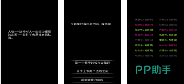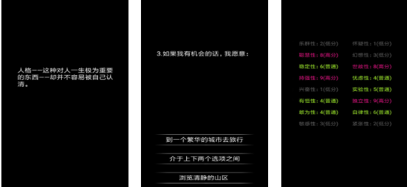 这款作品足以让每个人都更加认清自己的性格,多样的选择题和简约UI呈现都是亮点,每道题目都饱含深度需要大家深度思考再挑选,后续的问答会根据大家前期的选择发生改变,这款心理问答类型的游戏作品代入感不错,画面精简但也能让人关注到题目的变化,通过不断回答AI提供的问题就能更了解自己,单机快节奏运行方式也是本作优点。
