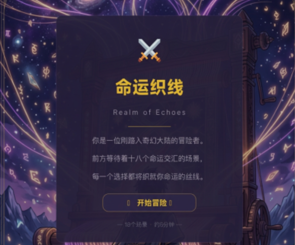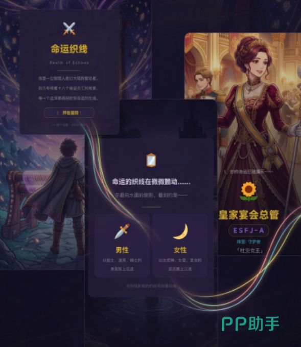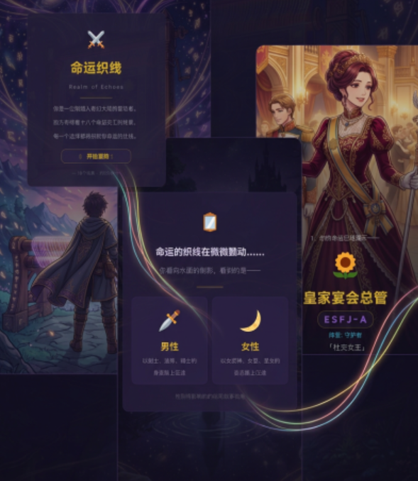 区别于常规心理测评工具,《命运织线》以完整故事线驱动交互流程。玩家将在一段架空世界观中展开旅程,通过角色代入完成情境判断,全程无机械式问答堆砌,大幅降低认知负担,增强重复游玩意愿。