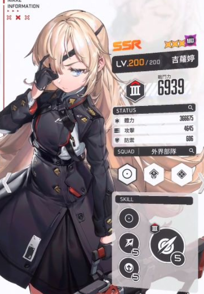 胜利女神新的希望是一个,可以操控二次元美少女,使用各类枪械不断对抗破坏者的游戏,每一个少女角色都会有不同的属性,包括他们使用的枪械和战斗方式也会有一定的区别,下面会带来胜利女神新的希望吉萝婷厉害吗,这是游戏里非常受欢迎的一个少女角色,并且角色所属的是SSR级别,这就代表角色非常稀有,并且战斗力很优秀。