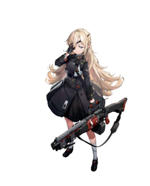 游戏里这个角色的定位是火力型的攻击,所以会使用机枪作为武器,金色的长发加上纯黑色的连衣裙,以及角色黑色的眼罩,会让整个人物变得非常神秘并且冷酷,角色在对战的时候会使用加特林机枪进行攻击,枪械可以装填300枚子弹,换弹时间要消耗2.5秒,机枪这种独特的特性,就表示角色将会拥有非常优秀的战斗能力。
