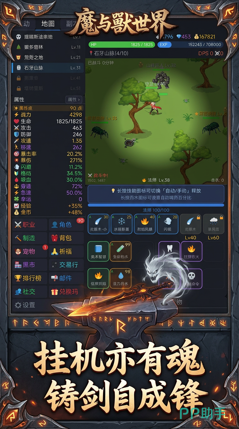 养成维度聚焦角色本体、装备体系与宠物生态三大支柱。角色升级主要依赖挂机收益、主线任务及副本挑战;等级提升后,通过天赋树定向强化输出、防御或辅助能力。装备共设16个穿戴部位,来源涵盖普通怪物掉落、副本通关奖励及世界Boss战利品,整体获取门槛较低,非付费玩家亦能稳定成型套装。此外,宝石镶嵌与玄铁铸魂两大系统支持属性二次赋能,助力战力实现阶梯式跃升。