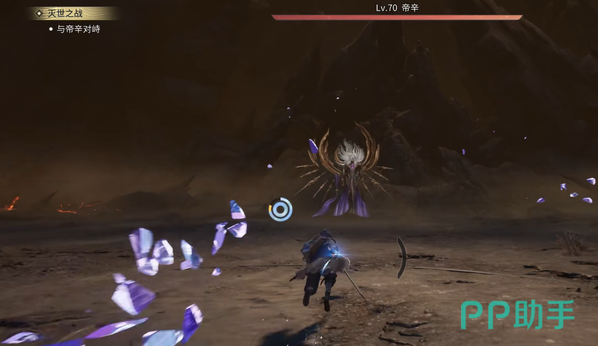 完成处决教学后,剧情转入高潮——挑战 BOSS 帝辛。需特别说明:本场战斗为强制剧情导向设计,无论玩家是否击空帝辛血条,或自身是否阵亡,均会自动触发预设动画并恢复满状态继续推进。因此,建议将此战视为综合操作检验场,重点演练闪避节奏、技能轮转及处决时机把控。