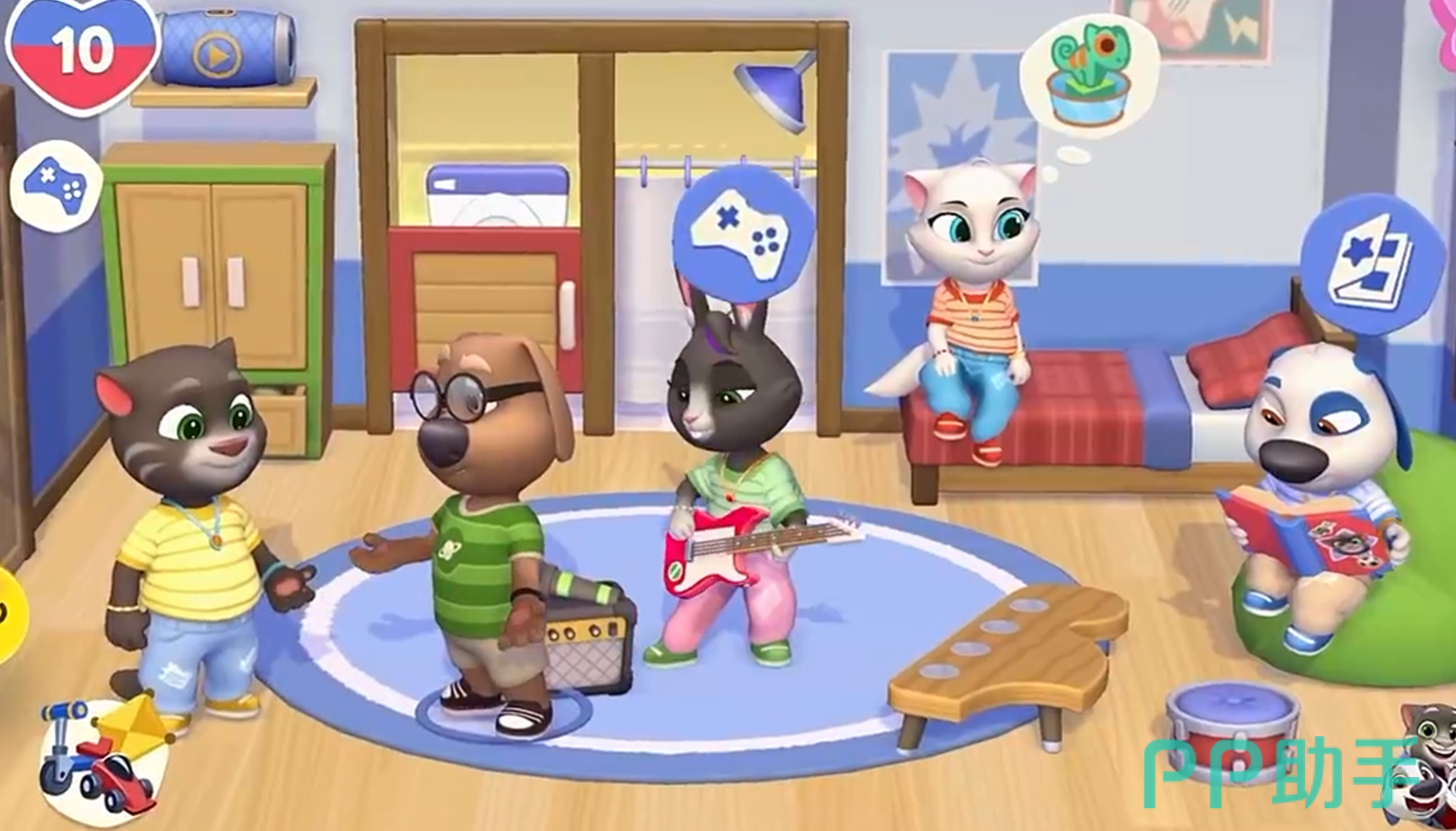 游戏当中主要存在的角色,分别有会说话的汤姆猫、安吉拉,汉克狗、狗狗本、金杰猫、贝卡兔。