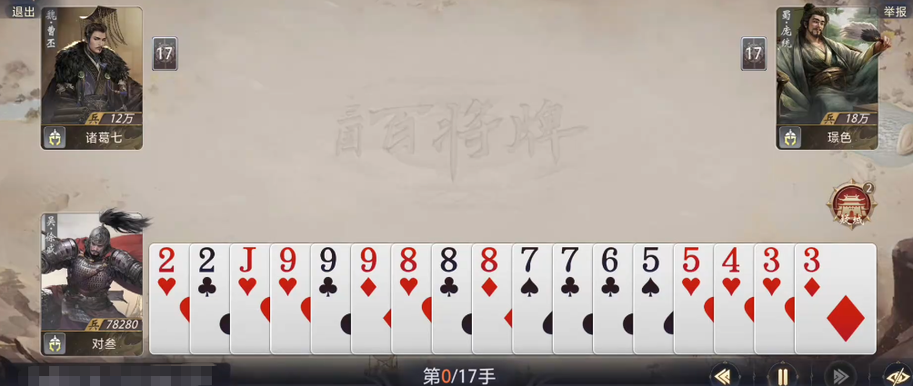 由于游戏中炸弹本就属于稀缺资源,且仅有王和A组合才能构成强力炸弹,因此徐盛提供的额外炸弹机会显得尤为珍贵。若起手牌型缺乏形成炸弹的基础,则建议以稳健打法为主,优先保留技能至后期使用。前期若无法建立足够的牌面优势,贸然出击反而容易被对手压制。因此,围绕徐盛构建策略时,应以拖入后期为核心思路,确保关键阶段具备连续应对与反制能力。