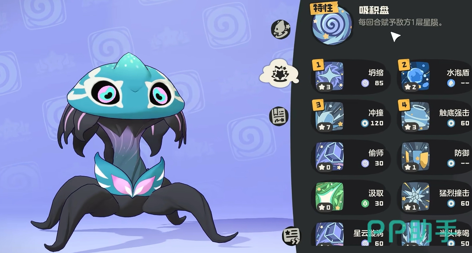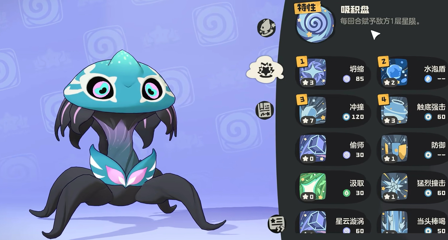 当哭哭菇成长至24级时,会自动进化为怖须菇;继续培养至38级后,无需任何额外道具或条件,即可进一步进化为最终形态怖哭菇。整个进化过程完全依赖等级提升,操作简便。哭哭菇家族共通拥有“吸积盘”特性,能够在每回合结束时为对手施加一层“星陨”状态,这一机制使其在组建星陨流阵容时具备战术价值,尤其适用于对抗毒系与武系精灵,幻系属性带来的克制效果能有效压制此类敌人。