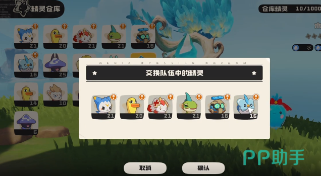 在点击之后,玩家就可以看到背包中所有的精灵这个界面是比较实用的,玩家可以在这个界面自由的去交换精灵。例如可以交换背包,还有仓库中的精灵,如果打算去挑战强大的boss,也可以把背包中一些等级相对低的精灵全部都放入到仓库中,然后去更换成战斗力比较出色的。