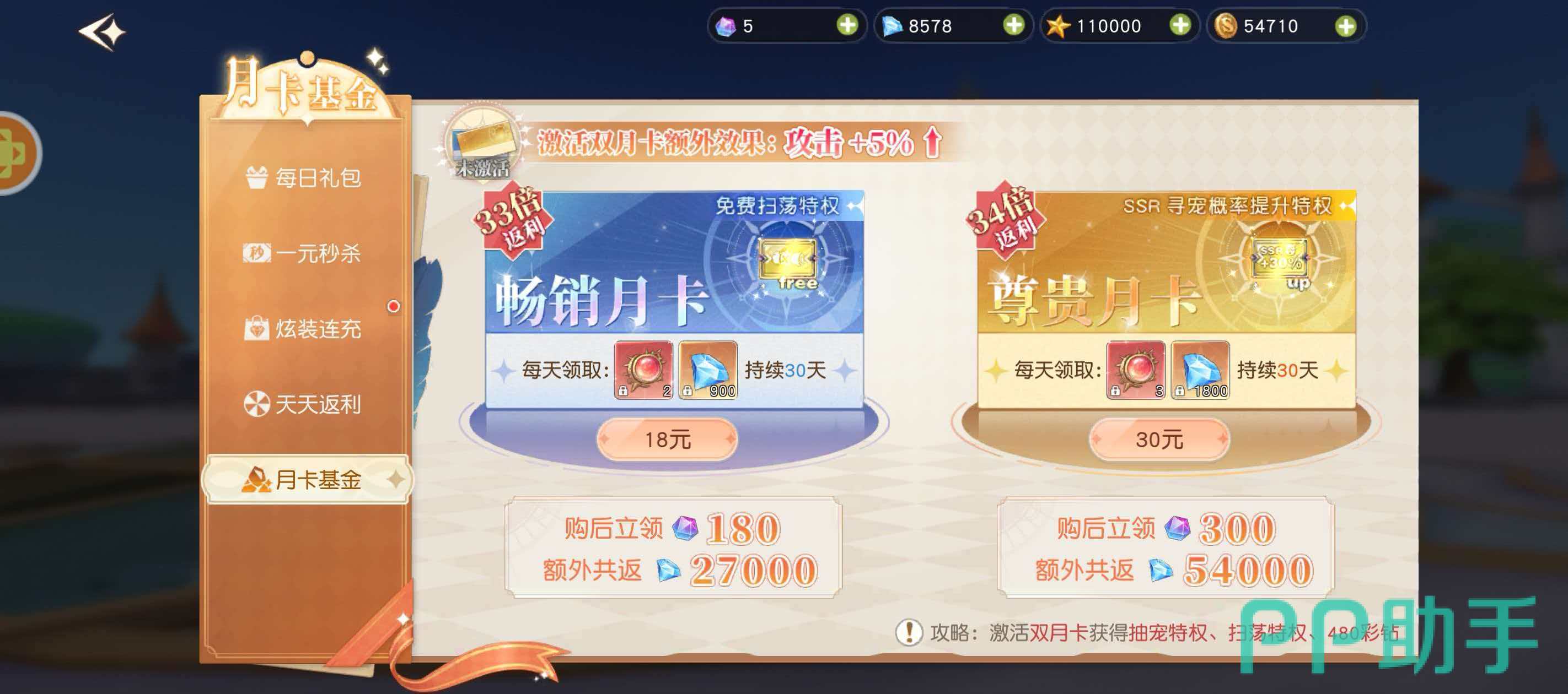 3、月卡基金长效收益