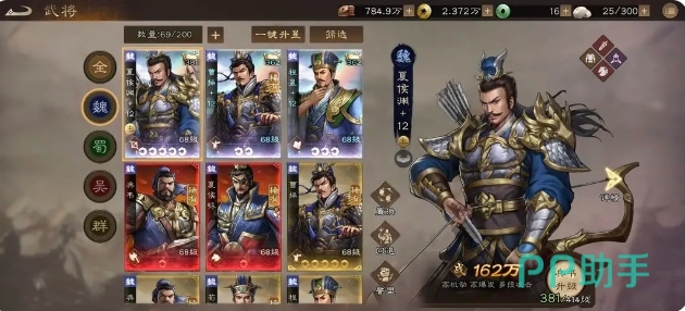 接下来分析一下四方势力的武将情况,首先是魏国武将,在魏国阵营中,有不少值得培养的武将,夏侯渊就是其中之一,他在游戏中的表现十分出色,还有夏侯惇,对于0氪玩家来说,主养神将单点理论上是最强的选择,荀彧则是魏国中后期的大法师,拥有强大的法术输出能力,在团队战斗中能够发挥重要作用,典韦呢前期不太适合培养,因为他的优势在后期竞技场才会显现出来,后期的典韦在竞技场上是猛将一枚,在前期拉夏侯渊星级的时候,如果魏国池子出现了非稀有的金卡,比如曹仁、徐晃、荀攸等,都可以统统当作狗粮吃掉,以便集中资源提升核心武将的实力。