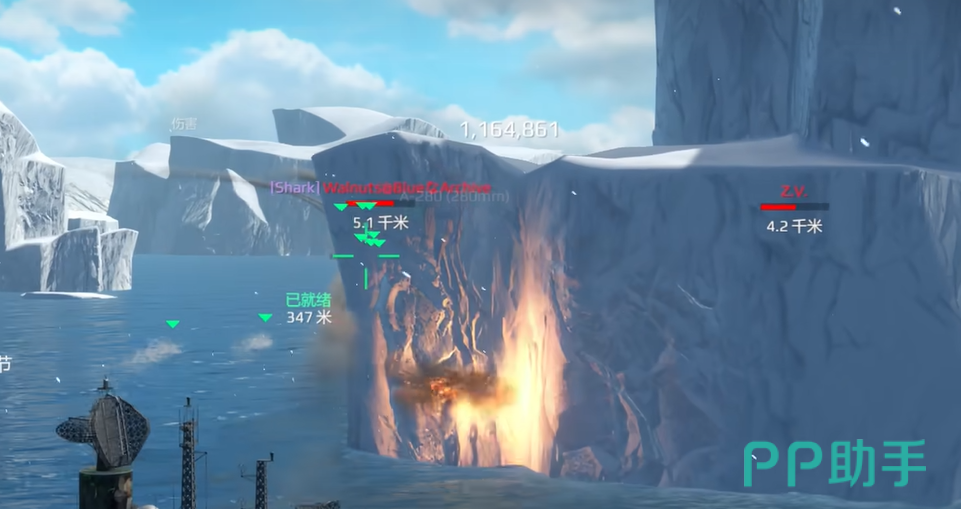 主炮的表现同样值得一提。200毫米舰炮单轮齐射可造成约6万伤害,冷却仅7秒,输出节奏相当快。虽然炮弹飞行速度较慢,不利于攻击远距离高速目标,但对航母、巡洋舰等大型舰艇的威慑力十足。尤其在近距离时,炮弹散布表现优秀,配合火箭炮,可以有效削弱航母的作战能力。面对驱逐舰时,这门主炮的短冷却也能在敌方露头的瞬间造成高额打击,起到很好的压制效果。