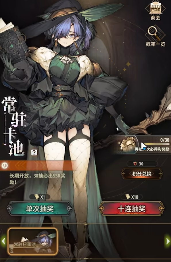 游戏目前开放的池子分为新手池和常驻池两种,其中新手池抽完就会消失,一次十连就会出金,能让人们快速地获取第一个SSR武器和角色,因而属于必抽的池子,但在抽完后就会消失,只剩下常驻池。常驻池有着30抽必得SSR的保底,而且该池子长期开放,抽卡次数继承,但所有能获得的SSR平摊出货概率,具体能获得哪一个SSR概率十分随机。