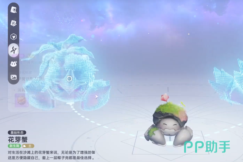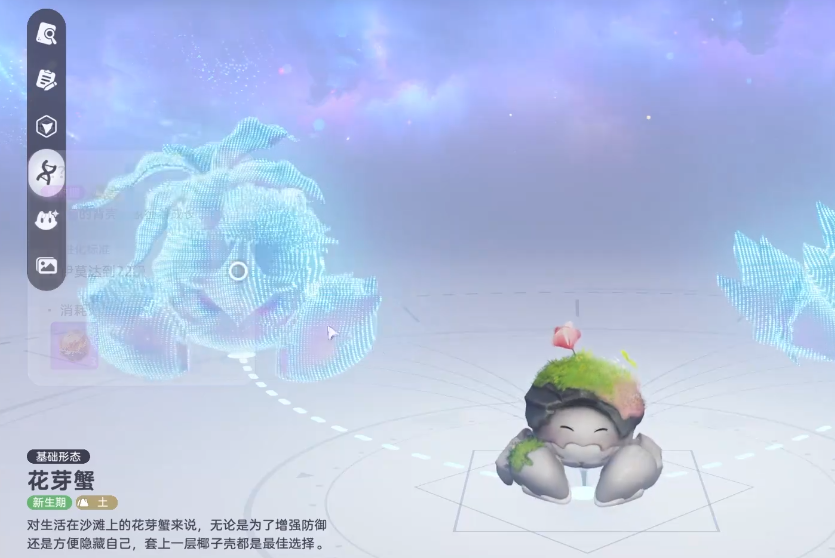 基础形态为花芽蟹初始状态,但需注意:该形态并非完全统一。其外观细节会随实时行为动态变化——例如处于“恋爱中”状态时,头顶将自然生成一朵绽放的小花,体现游戏内情绪系统与视觉表现的联动机制。目前游戏已确认即将开启第二次测试,建议关注官方渠道及时获取测试资格。