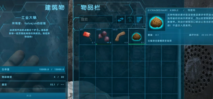 饲料是影响驯服效率的关键变量。经实测验证,异特龙蛋饲料为当前版本驯服狮鹫的最优选择,其效率显著优于其他常规饲料。该配方需消耗:1个土豆、1份优质熟肉干、2颗紫色浆果、3单位纤维,并添加适量水进行合成。