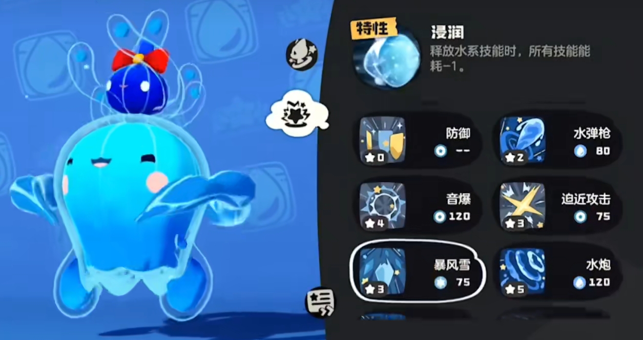 作为游戏里随处可见的一种精灵,水蓝蓝在初期时多用于辅助其它精灵进行输出,或是用来为阵容补伤害,其技能水泡盾在初期有着不错的减伤能力,在挑战初期高难敌人时非常好用,同时还附带有提升魔攻的特殊效果,可谓是一个攻防都兼顾到了的技能。