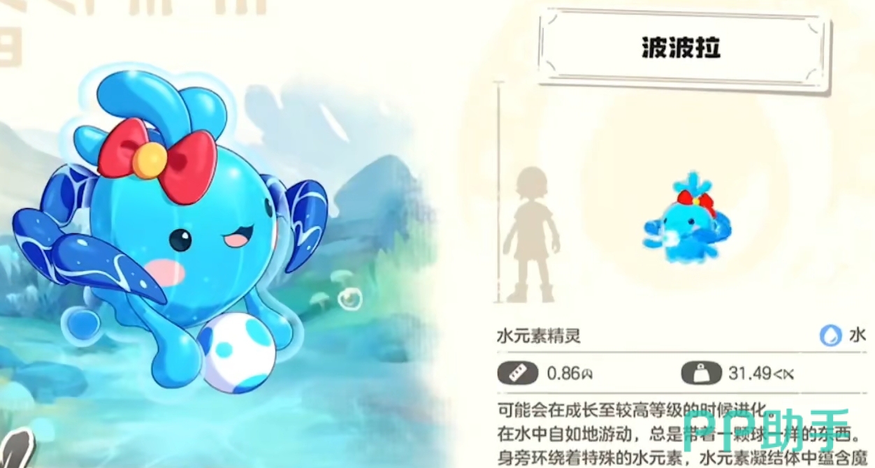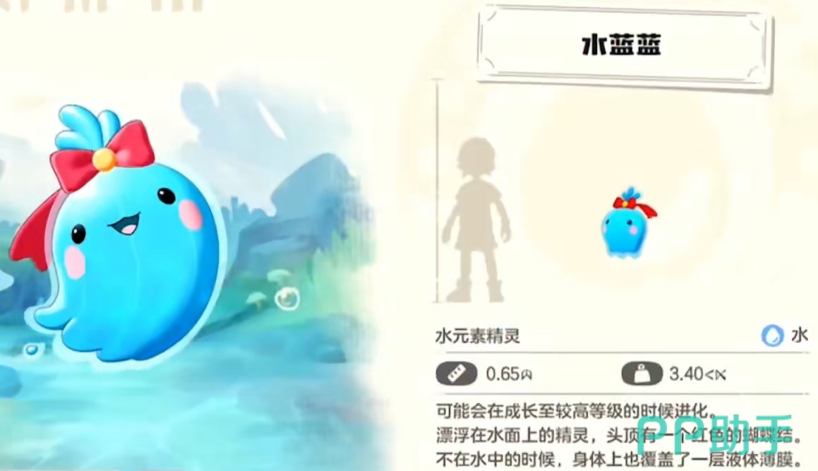 水蓝蓝的进化方式也比较简单,只要将它提升至一定的等级,就能令它进化成为波波拉。同理,当波波拉的等级变高后,它就会再次进化成为最终形态水灵。整个进化过程非常的丝滑,不需要玩家们去特定的地点,也无需在特定的时间进化,极其的方便。
