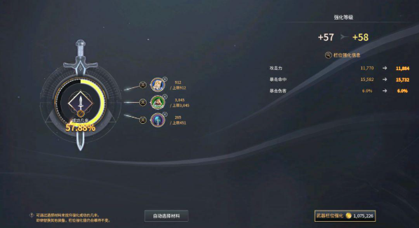 想要显著增强角色实力,装备强化是核心所在,其中蕴含诸多技巧。武器强化虽然消耗大量金币,但带来的属性飞跃十分可观。以强化等级从57升至58为例,成功后攻击力可由11,770提升至11,884,同时暴击率也会随之提高。在操作过程中,合理选择强化材料与功率至关重要。值得注意的是,即便缺少部分装备,已有的强化数值也不会下降,系统设计相当人性化。防具强化方面,材料获取难度较高,建议等待成功率达到100%时再进行操作,避免资源浪费。