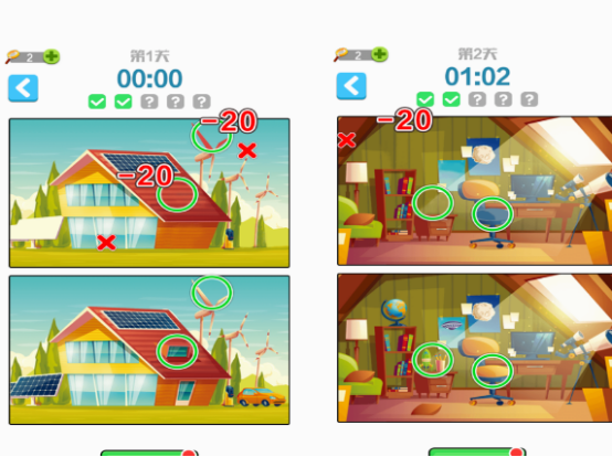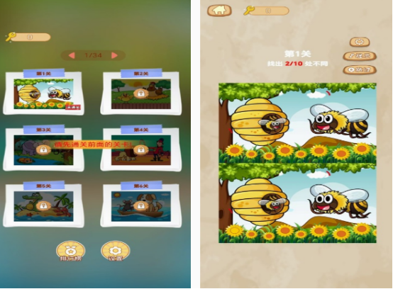 这也是以闯关的玩法为主的找茬手游,在每个关卡中,它都会有相应的时间限制,如果点击错误的情况下还会被扣分。所以玩家在玩的时候,千万不能随意的进行点击,不然的话,会让自己通关的时候更困难。要在玩的时候仔细观察,两个图片当中,所具备的不同之处,来完成任务。还提供了无尽挑战模式,大家都可支持自由选择。