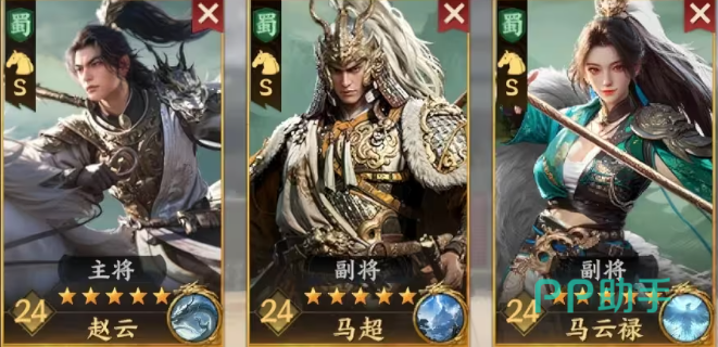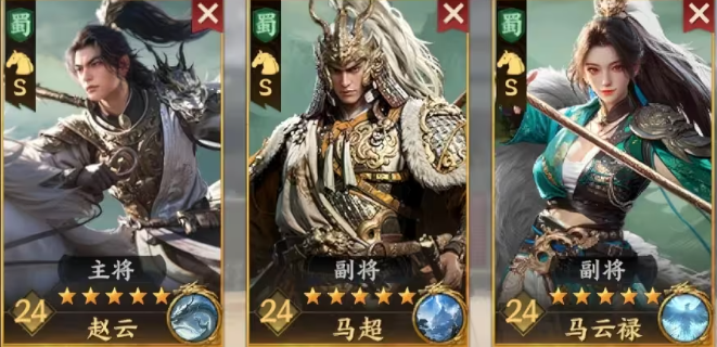 最后一支推荐阵容为骑兵突击队,强调高频普攻与追击连击,由马超、赵云与马云禄构成。三人同属蜀国阵营,便于激活阵营共鸣带来的额外加成效果。该阵容的核心优势在于频繁触发追击机制,从而实现多次普攻输出。马云禄需在后期解锁兵书后才能完全发挥其追击潜力,并进一步提升普通攻击伤害。赵云凭借骑兵不屈被动提供5%移速加成,增强战场机动性;马超则依据自身与目标之间的移速差值提升普攻威力,配合马云禄的布局增伤效果,形成环环相扣的输出循环。此组合适用于野地扫荡与小型会战,具备极高作战效率。